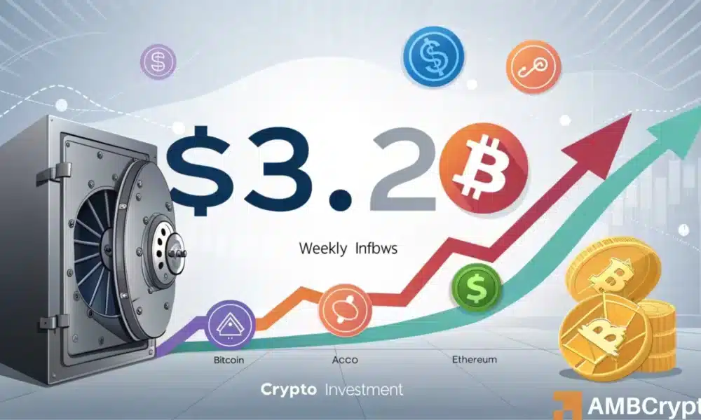 Os produtos de investimento em criptomoedas mantiveram uma tendência impressionante ultimamente, registrando mais de US$ 3,2 bilhões em entradas na semana passada. Isto marcou a décima semana consecutiva de impulso positivo.