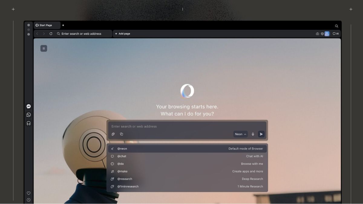 A Opera possui uma opção de assinatura para o Opera Neon, seu navegador com recursos nativos de IA. O serviço conta com agentes projetados para realizar tarefas na web sem que o usuário precise abrir várias abas.