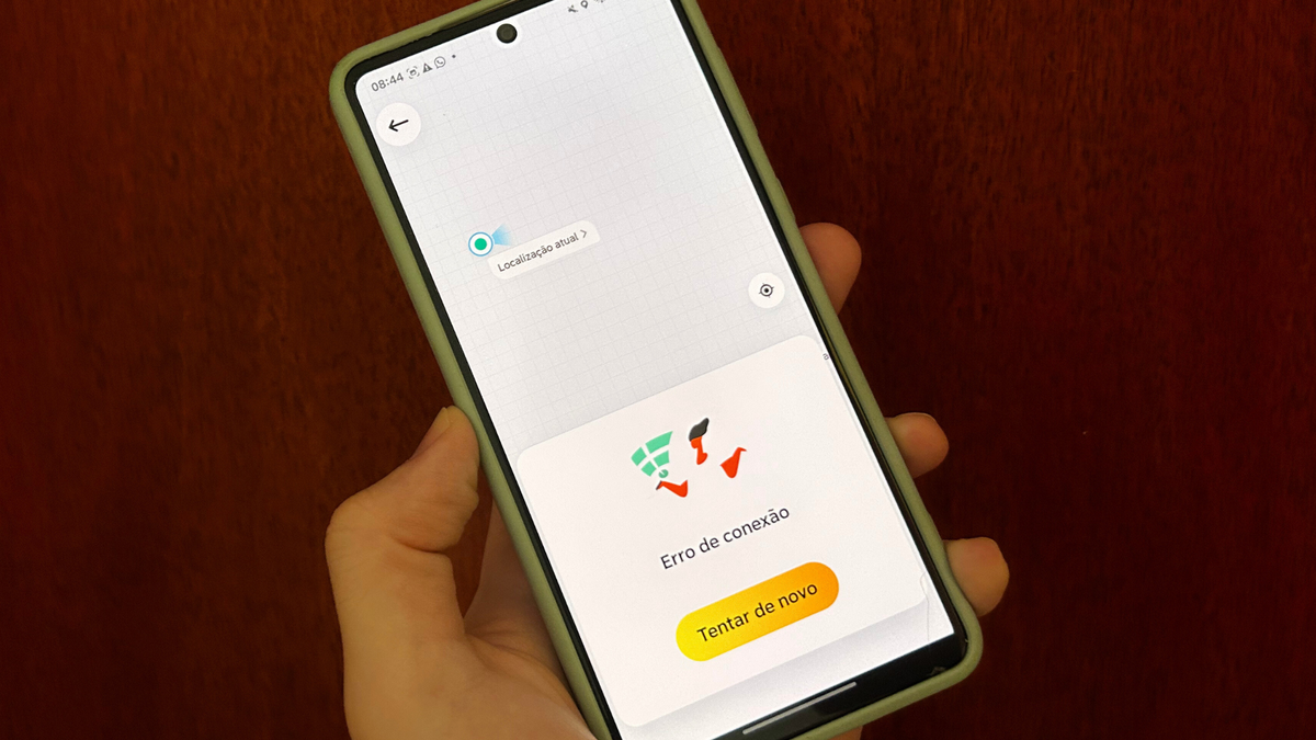 Em teste feito pelo Canaltech, o aplicativo abre, mas não consegue carregar informações básicas, como endereços. Não é possível pedir uma corrida ou ver atualizações no mapa, e uma mensagem de “Erro de conexão” pode aparecer em alguns momentos.