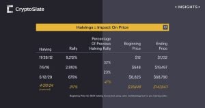 A análise histórica da Pantera indica tendências semelhantes, com a porcentagem do rali anterior pelo halving experimentando um aumento de 32% em 2016 e uma valorização de 23% em 2020. A Pantera está projetando um aumento de 47% até o halving de 2024, potencialmente posicionando o Bitcoin em torno de US$ 35.000 até o halving de 2024. próximo halving.