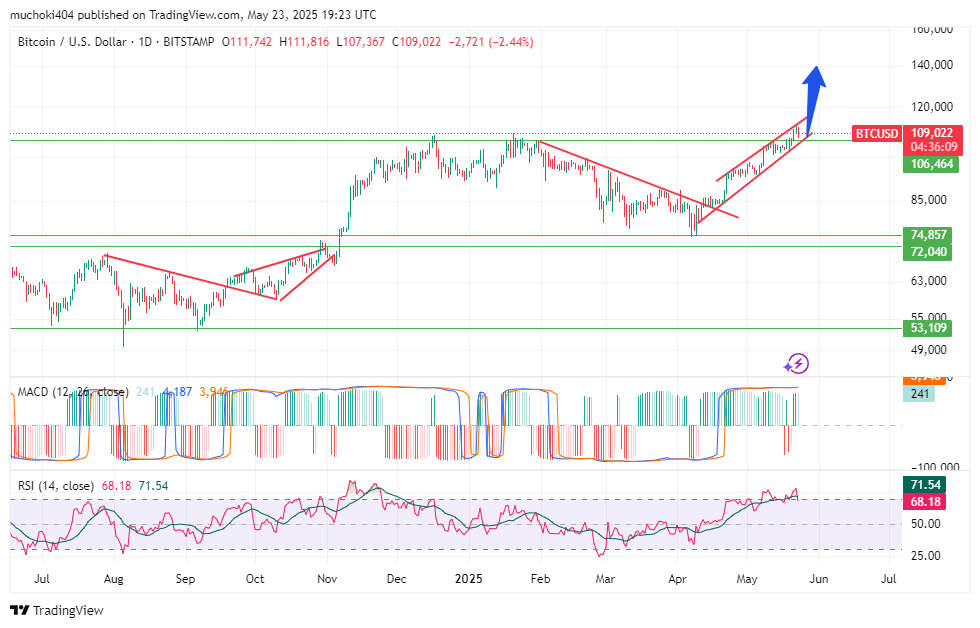 No período diário, o preço do BTC seguiu um padrão fractal quase semelhante ao de 2024 de 2024. Se o preço do BTC fechar consistentemente acima da borda superior do canal crescente estabelecido nos próximos dias, uma manifestação potencial para US $ 140 mil será inevitável. No entanto, um fechamento consistente abaixo da borda inferior do canal em ascensão desencadeará uma pressão de baixa rejuvenescida potencialmente em relação a US $ 74 mil novamente.