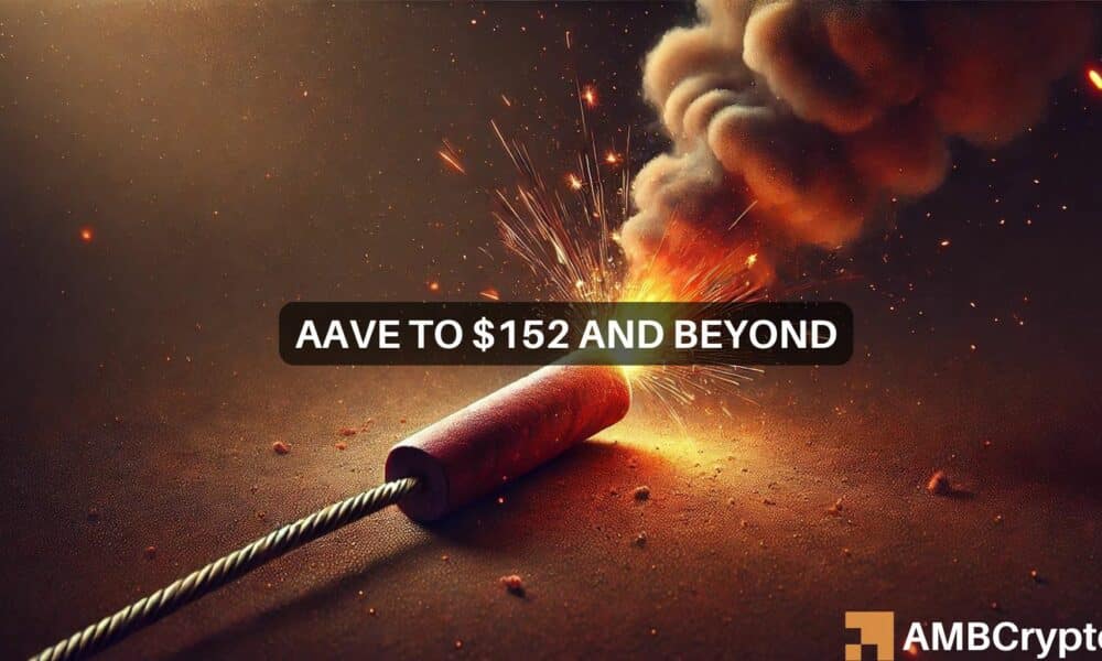 A ação do preço do Aave parece pronta para um movimento ascendente adicional, rompendo o nível de US$ 152 após tocar o nível de preço de US$ 148.