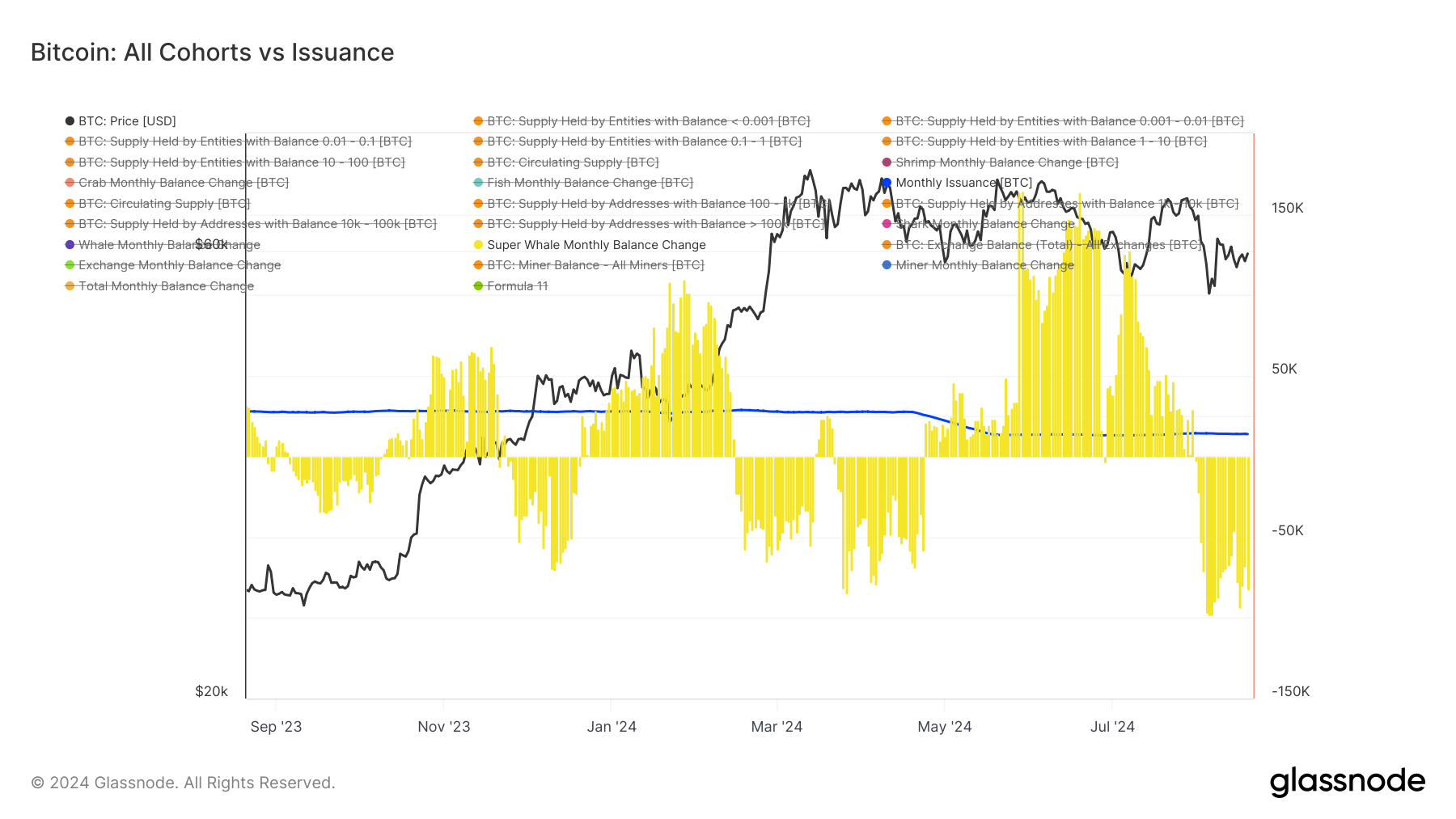 Bitcoin: Todas as coortes vs emissão: (Fonte: Glassnode)