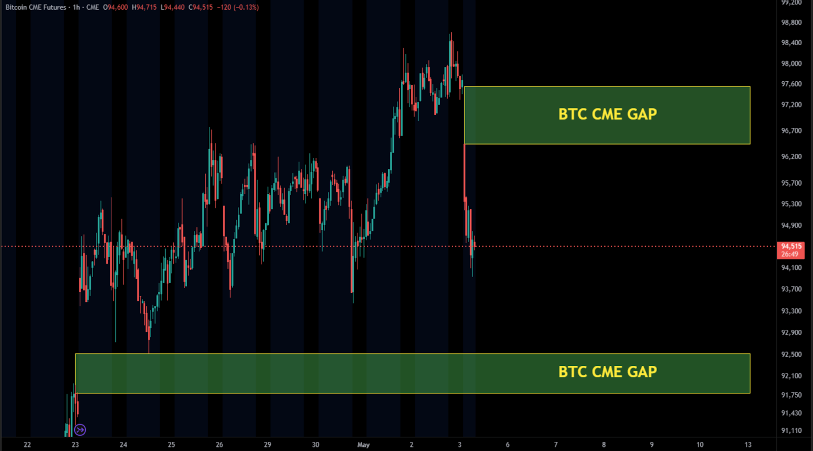 Por isso, seria interessante ver qual o CME Gap o preço do Bitcoin escolhe fechar primeiro, pois a ação de preço a seguir pode depender disso.