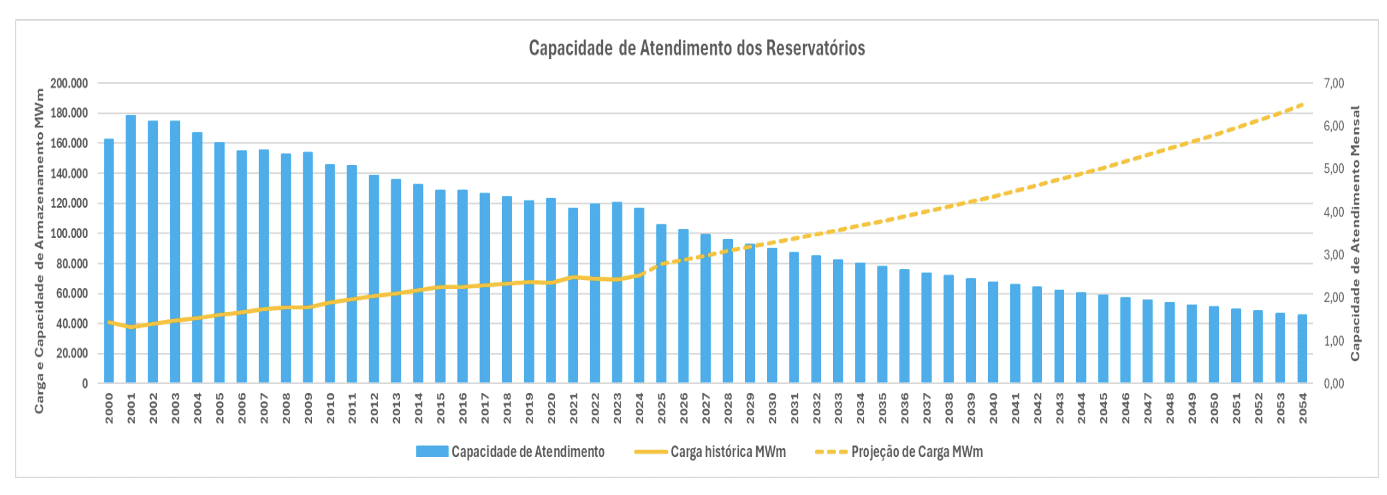 Nesse contexto, a tendência de redução da capacidade de armazenamento dos reservatórios hidrelétricos brasileiros, identificada pelo Operador Nacional do Sistema Elétrico (ONS), constitui fator adicional de preocupação. Tal tendência reforça a necessidade de adoção de medidas voltadas à ampliação da flexibilidade sistêmica, inclusive por meio da repotencialização e/ou da adição de unidades geradoras das fontes hidrelétricas existentes.