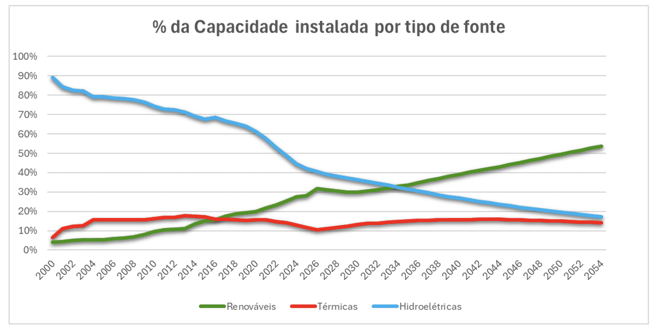 Gráfico 3: Evolução da % das fontes na matriz elétrica brasileira