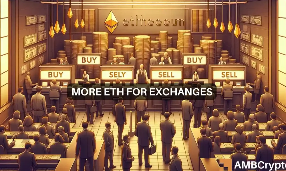 Ethereum [ETH] as baleias fizeram recentemente um movimento significativo, que afetou notavelmente o fluxo líquido no mercado. Isso coincidiu com uma queda no preço da ETH, acompanhada por um aumento gradual da oferta nas bolsas.