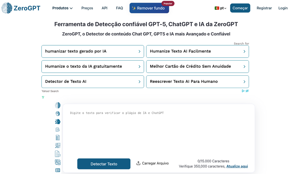 Além de detectar textos feitos com IA, ZeroGPT também conseguem “humanizar seu texto” (Image: captura/ZeroGPT)