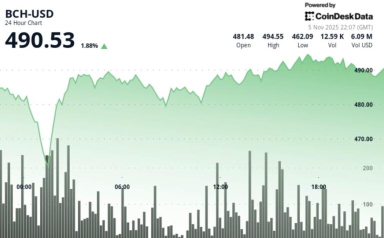 De acordo com o modelo de dados de análise técnica da CoinDesk Research, o BCH subiu 3,3%, para US$ 491,80, após compensar US$ 487 no volume da sessão europeia acima da média, postando uma faixa de US$ 33,36 e um…