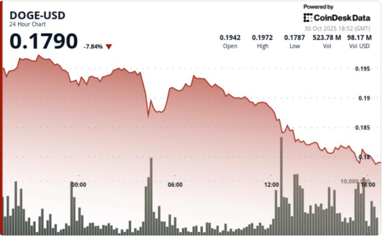 Dogecoin estendeu as perdas durante a sessão de terça-feira, despencando 6,8% para quebrar abaixo do suporte chave de US$ 0,18, já que as fortes saídas de baleias e a elevada atividade comercial confirmaram a distribuição institucional nos mercados de moedas…
