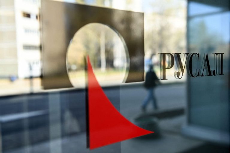 O logotipo da gigante russa de alumínio Rusal é retratado em sua sede em Moscou em 18 de abril de … [+] 2021. (Foto de Kirill KUDRYAVTSEV / AFP) (Foto de KIRILL KUDRYAVTSEV / AFP via Getty Images) AFP via…