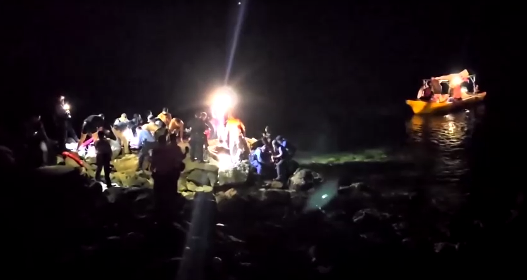 Um Vídeo inventa para o Redes Sociais Pela Polícia Mostrou nacional Mostros e Socorristas de Socorristas Carregando SoBREVIVENTES PARA UMA REGIOO ROCHOSA, ALNGUNS EM MACAS, ENQUANTO UM BARCO EMITIA UMA LUZ PORTE EM MEIO –