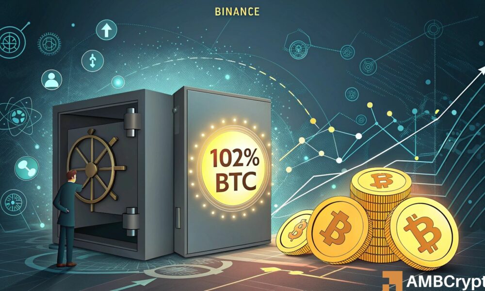 De acordo com a Cryptoquant, a Binance atualmente detém 616.886 BTC contra os saldos líquidos do cliente de 604.410 BTC, elevando seu índice de reserva do BTC para 102%.