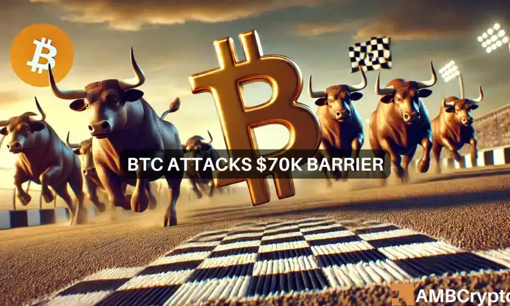 À medida que o Bitcoin continua a desafiar a barreira dos US$ 70 mil, o mercado está preparado para ganhos potenciais. Se o BTC conseguir romper esse nível e se manter, isso poderá sinalizar o início de uma nova alta.