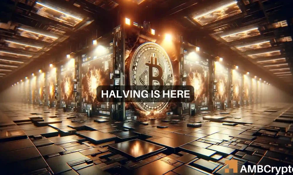 Depois de muita expectativa, o Bitcoin finalmente completou seu quarto halving na madrugada de 20 de abril GMT. Devido ao halving, as recompensas da mineração caíram de 6,25 BTC para 3,12 BTC. O evento que ocorre uma vez a cada 4 anos, Bitcoin [BTC] sofreu sua redução pela metade quando o bloco 840.000 foi adicionado ao blockchain do Bitcoin.