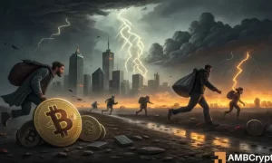 Essa queda abrupta é um sinal de desenrolamento em massa de posições alavancadas, provavelmente desencadeadas por liquidações em cascata e saídas de pânico.