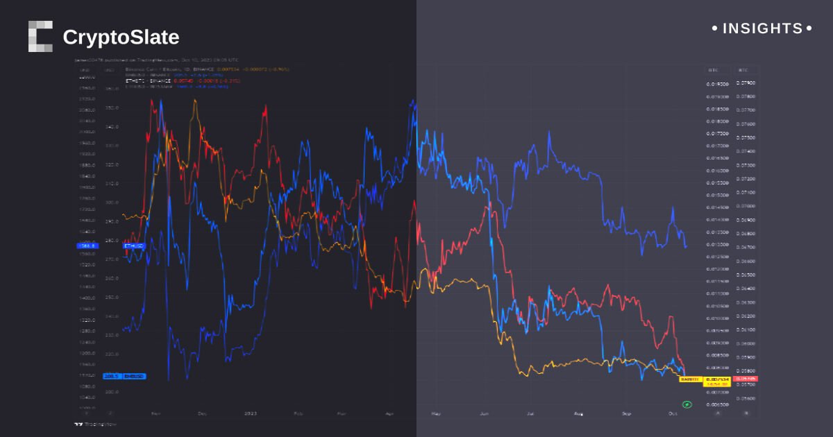 Quando avaliada em termos de dólares americanos, a Binance Coin atingiu US$ 208 pela terceira vez. A proporção entre Ethereum e Bitcoin caiu para o mínimo histórico de US$ 0,057. Curiosamente, o valor denominado em dólares do Ethereum evitou atingir um novo mínimo, mantendo-se estável acima do mínimo anterior de US$ 1.544 em setembro.