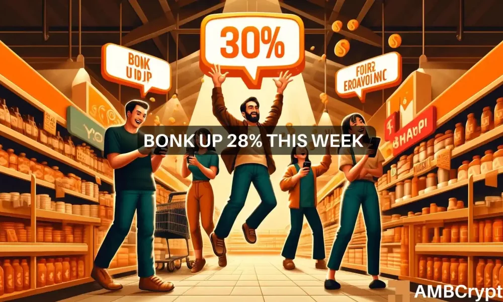 • BONK testemunhou forte impulso de alta, mas reduziu a pressão de compra