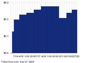 Em geral, os valores dos dividendos nem sempre são previsíveis e tendem a acompanhar os altos e baixos da rentabilidade de cada empresa. No caso do Brixmor Property Group Inc, observar o gráfico histórico do BRX abaixo pode ajudar a avaliar se o dividendo mais recente provavelmente continuará e, por sua vez, se é uma expectativa razoável esperar um rendimento anual de 5%.