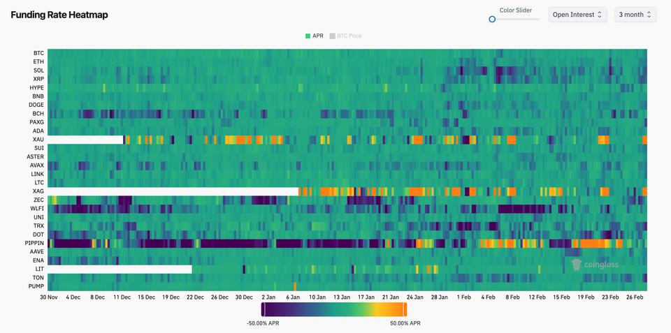O financiamento profundamente negativo normalmente sinaliza um posicionamento vendido agressivo e um sentimento de baixa, uma vez que os traders estão dispostos a pagar um prêmio para manter as apostas negativas.
