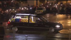 Dezenas de milhares de pessoas em luto se reuniram para observar as procissões na Escócia. Em Londres, um grande número de súditos deixou flores e mensagens nos jardins dos parques reais.
