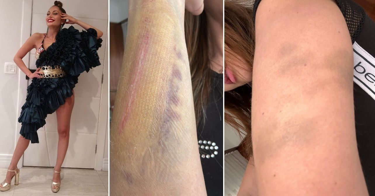 No BO, foram anexadas imagens das agressões, como hematomas e um corte no braço, que Maria alega ter sofrido,