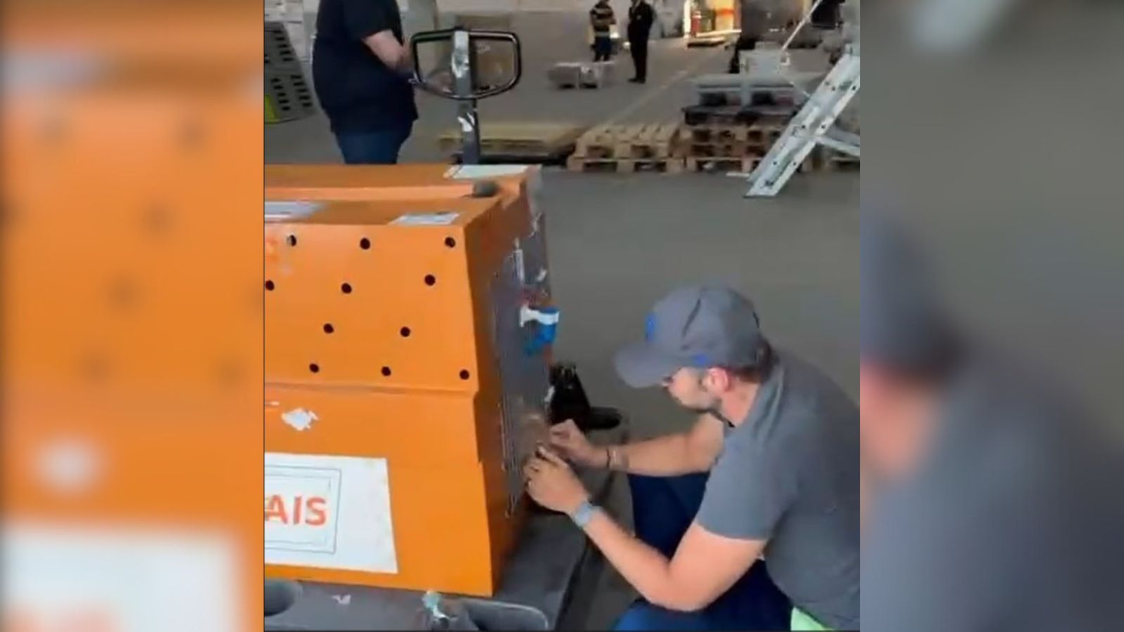 Os funcionários da companhia aérea gravaram imagens do animal no momento do embarque, que seriam enviadas ao passageiro.