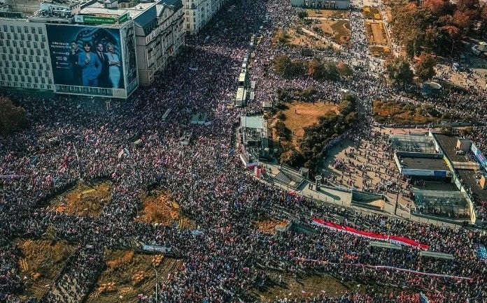 Uma multidão comparada à capital polaca, Varsóvianeste domingo (1º), para um comício organizado pelo partido da oposição antes das eleições que poderá determinar o futuro da Polônia n / D Europa no final deste mês. Os organizadores disseram que um…