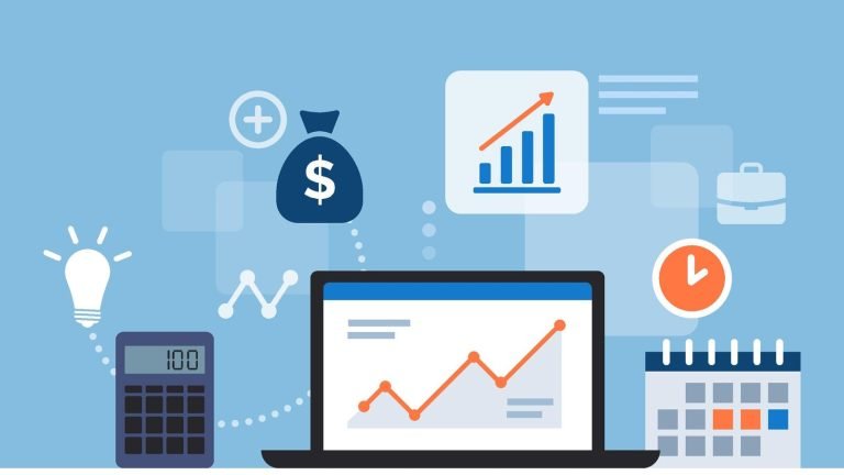 Área de trabalho de negócios com laptop, ícones e aplicativo financeiro, conceito de finanças e gerenciamento getty bolha de IA? Comício do mercado de urso? Não me importo porque vejo cinco dividendos entre 10,1% e 13,5%. Agora isso é ar…