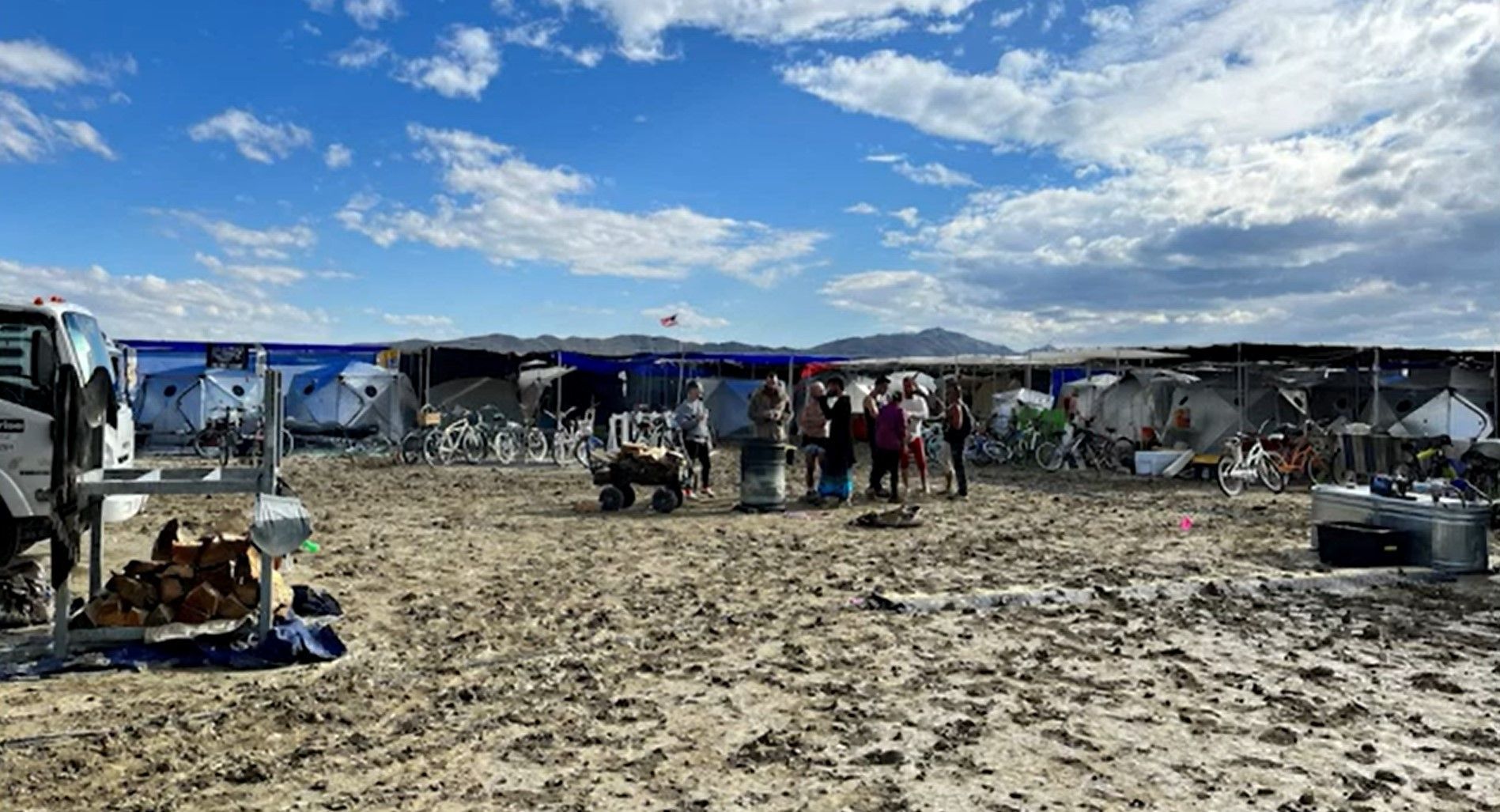 A área remota no noroeste de Nevada foi atingida pelo equivalente a 2 a 3 meses de chuvas em apenas 24 horas entre sexta-feira (1º) e sábado de manhã. As fortes chuvas caíam em terrenos secos do deserto, levantando lama espessa e argilosa que os participantes do festival diziam ser muito difícil de caminhar sobre ou andar de bicicleta.