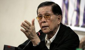 Enrile, de 98 anos, disse que o diagnóstico foi feito dias atrás e não nenhum desconforto.