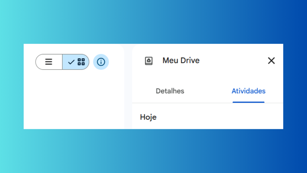 Para começar, você deve clicar no ícone de “Informações” no canto superior direito da tela, indicado pela letra “i”. Em seguida, selecione a aba “Atividade”, onde você poderá ver todas as movimentações que aconteceram na pasta selecionada.