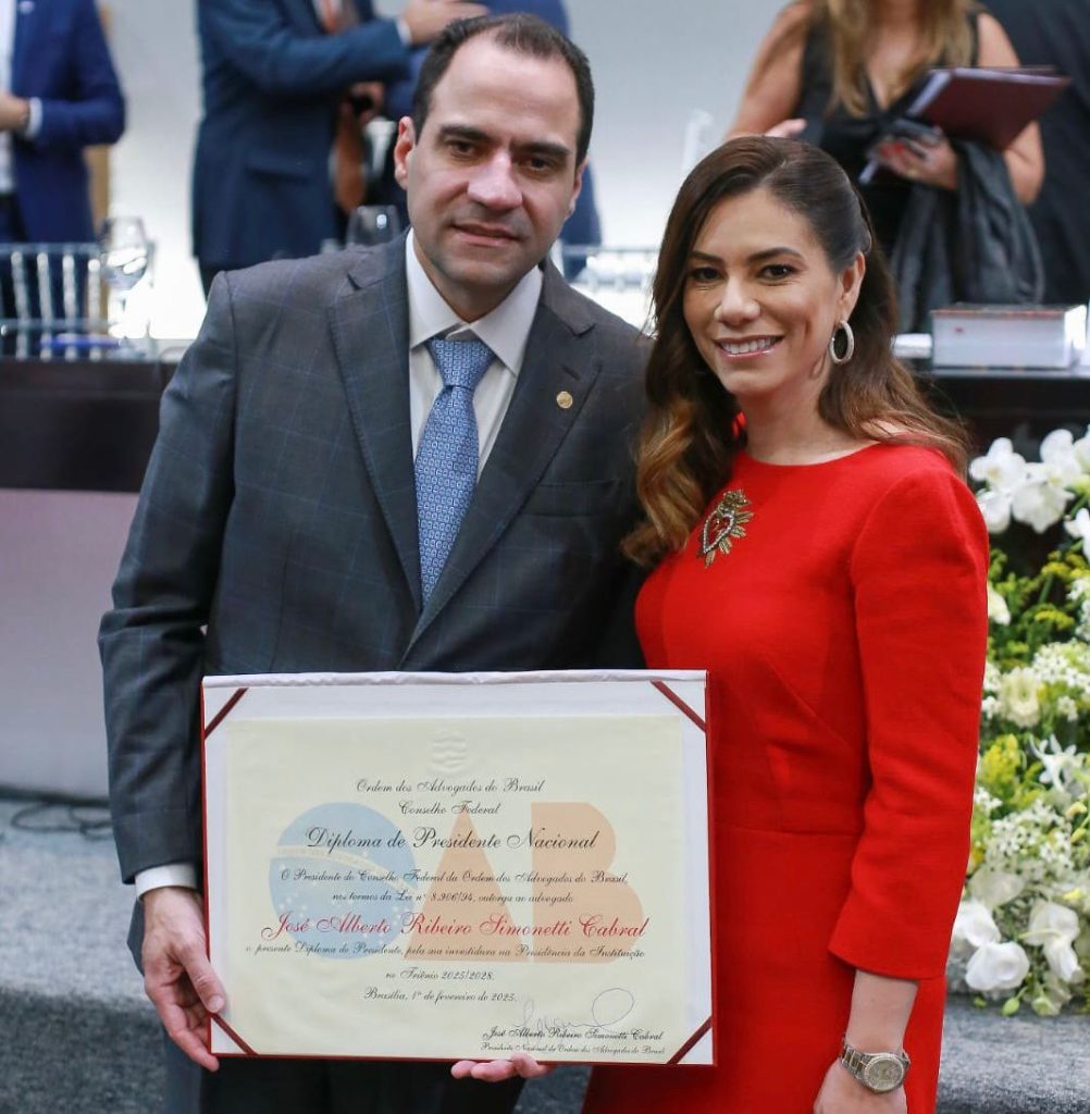 Presidente nacional da OAB divide a alegria de sua reeleição com a esposa Carol Simonetti e familiares que prestigiaram a posse.