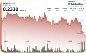 • Hora final da sessão (01: 11–02: 10) viu o DOGE Advance de US $ 0,239 a US $ 0,241 antes de consolidar a US $ 0,240.