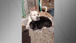 A foto dos animais dividindo uma coberta foi registrada pela manicure Rose Silva, tutora do pitbull Zeus. Ela conta que o macacoda raça bugio, foi batizado de “Mochila” e que há alguns anos aparece no quintal da casa onde mora.