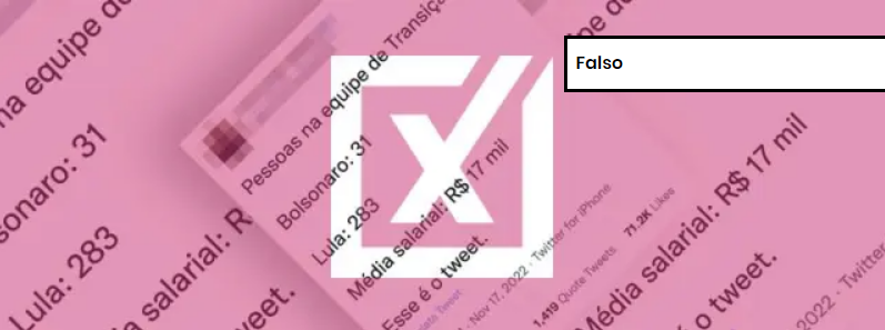 Falso: É falso tuíte do vereador Fernando Holiday (Republicanos) alegando que a equipe de transição do presidente eleito Luiz Inácio Lula da Silva (PT) teria 283 integrantes com média salarial de R$ 17 mil, supostamente superior à equipe de Jair Bolsonaro (PL) em 2018. A mensagem foi apagada pelo autor, que postou retratação reconhecendo erro.