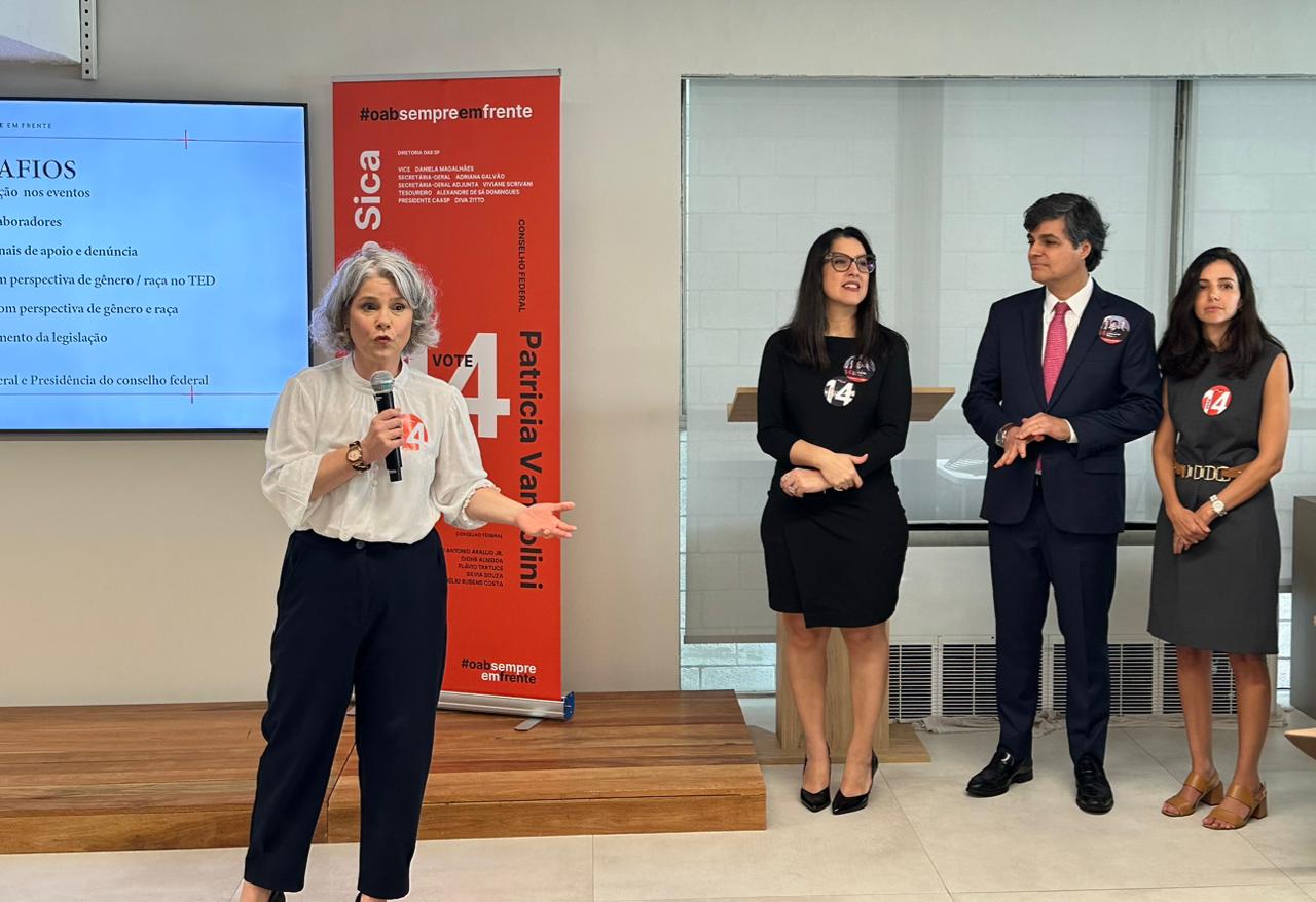 Vanzoliniu destacou ainda que esse trabalho vai continuar com a eleição da Chapa 14 para comandar a OAB-SP no triênio 2025-2027. “Não vamos parar de fazer história e seguiremos  avançando na próxima gestão. Pela primeira vez teremos dentro do Conselho Federal da OAB uma bancada com três mulheres titulares. Esse pioneirismo muito nos orgulha”.
