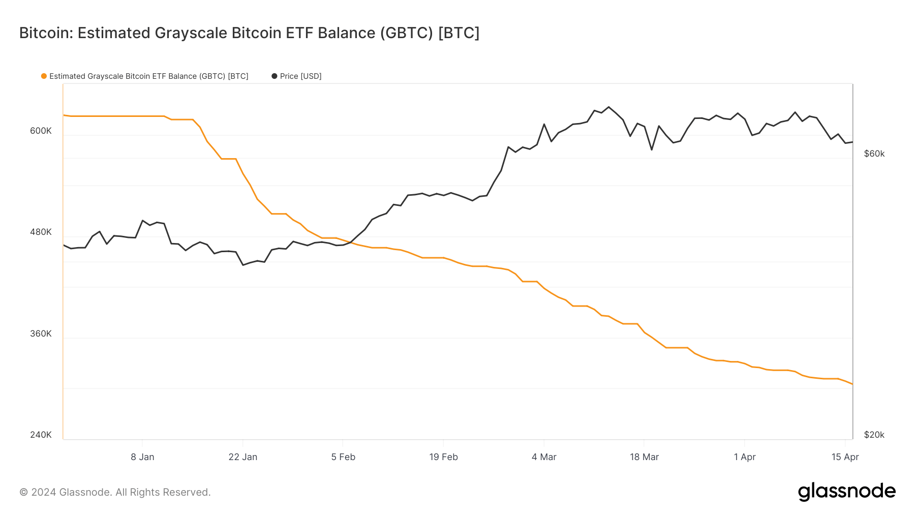 Quando os ETFs Bitcoin à vista foram aprovados em janeiro, a Grayscale mantinha cerca de 640.000 BTC sob gestão. Agora tem cerca de 308.000 BTC avaliados em cerca de US$ 19,7 bilhões.