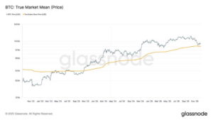 Durante esse recuo, a verdadeira média do mercado ficou perto de US$ 81.000 e atuou como um suporte claro. Notavelmente, o bitcoin ultrapassou este nível pela primeira vez em outubro de 2023 e não foi negociado abaixo dele desde então, reforçando a sua importância como um limite estrutural do mercado altista.