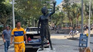 Uma estátua de bronze em tamanho real, de 1,75m, da ex-vereadora Marielle Franco4 de março, no dia 11 de 208, no Rio de Janeiroserá inaugurado nesta quarta-feira (27), na Praça Mário Lago, no centro da capital fluminense.