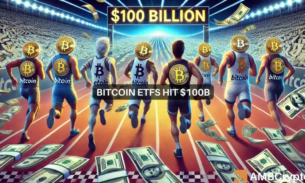 Ver Bitcoin [BTC] Os ETFs alcançaram um marco significativo, ultrapassando US$ 100 bilhões em ativos sob gestão (AUM).