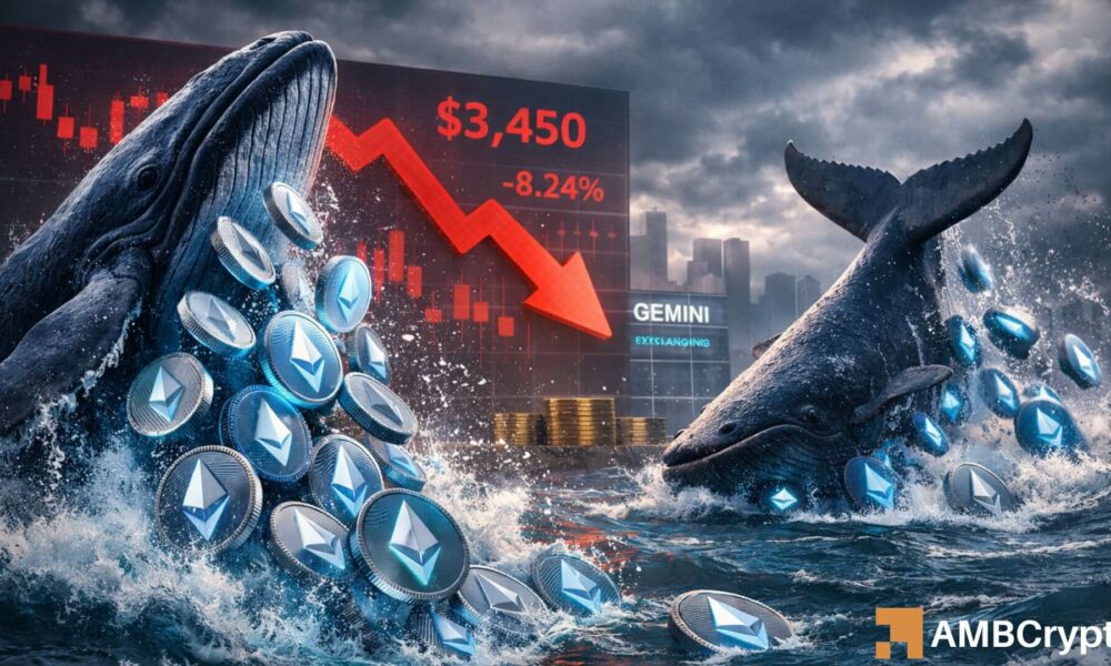 No dia 16 de janeiro, Ethereum [ETH] enfrentou pressão de venda de grandes baleias, com o preço testando os principais níveis de resistência em torno de US$ 3.450.