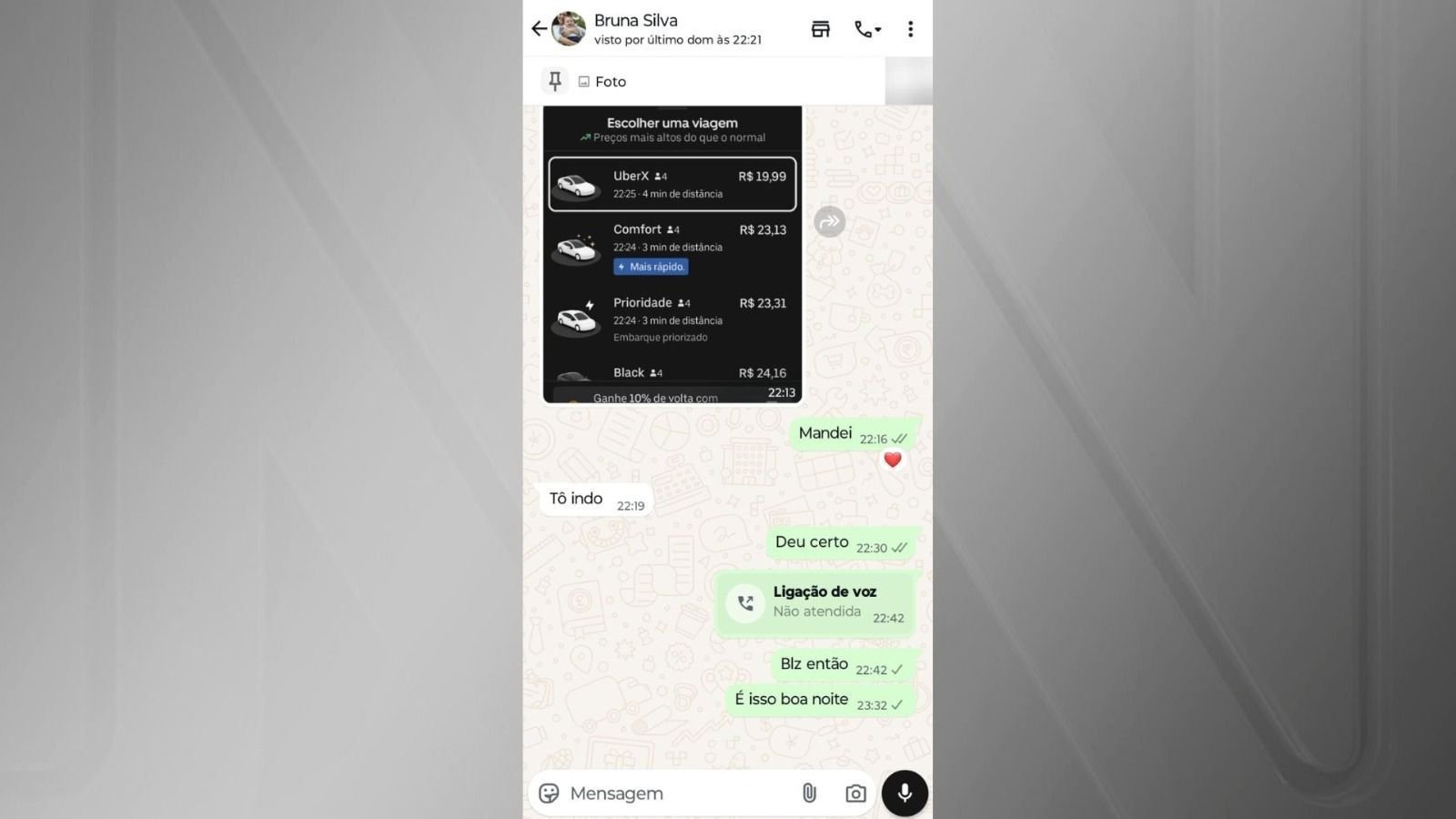 Um mensageiro Última que ela recebeu FOI FOs 22H30, e Sua Última atividade on -line sem whatsapp foi paras 22h21. Ó valor transferido para o uber não chegou um ser utilizado.