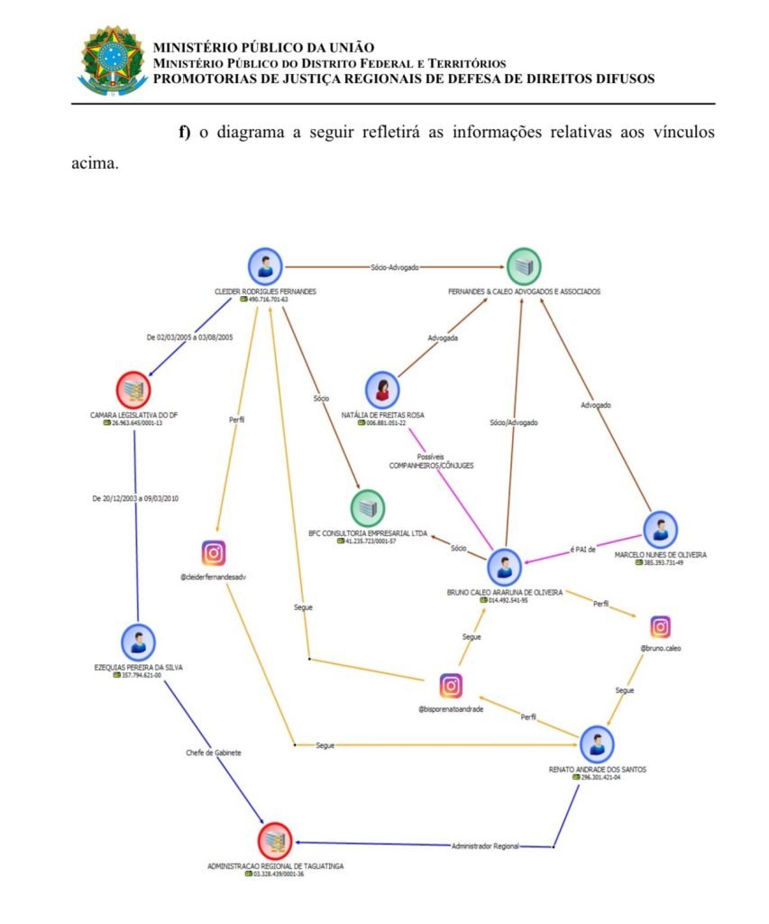 Com as evidências apresentadas e o próprio relatório de inteligência do MP, os promotores então iniciaram a apuração de improbidade. O próximo passo é apurar qual é a relação contratual entre os outdoors e o governo do Distrito Federal. “O MINISTÉRIO PÚBLICO DO DISTRITO FEDERAL E TERRITÓRIOS, no cumprimento das funções institucionais que lhe foram atribuídas pela Constituição Federal, artigo 129, caput e incisos, e, ainda, com esteio no artigo 8º da Lei Complementar nº 75/93, solicita, no prazo de 20 (vinte) dias, que informe a localização dos engenhos publicitários existentes na Região Administrativa de Taguatinga, quem seriam seus proprietários e quais deles teriam sido contratados para a veiculação de propaganda institucional e/ou de interesse público no ano de 2024, indicando os respectivos períodos de contratação, bem como o número dos respectivos processos SEI”, requereu o MP-DFT.