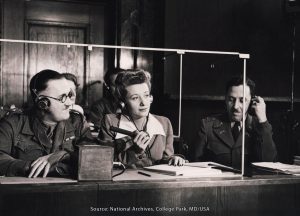 Então, um novo problema se interpôs: como fazer com que todos entendassem os réus alemães, as testemunhas de diferentes nacionalidades e os juízes, promotores e advogados que falariam em inglês, francês, alemão ou russo? Os tradutores dariam conta da tradução escrita – mas, e as falas? Quem poderia traduzi-las ao vivo?