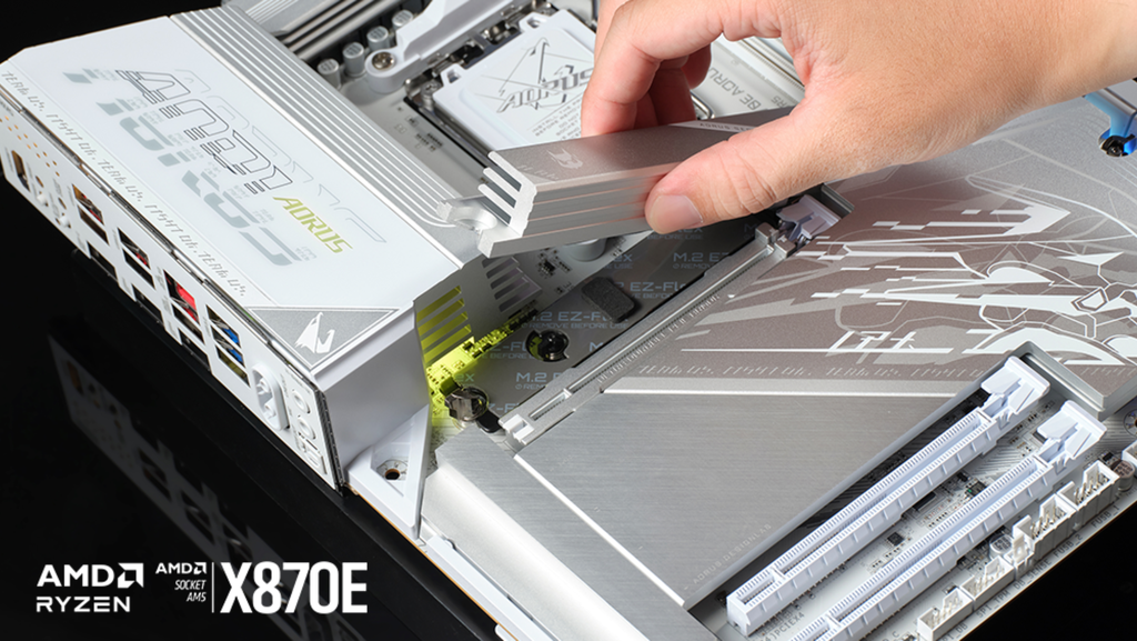 Outro ponto interessante desta nova geração é que a GIGABYTE não olhou apenas para benchmark. Ela também pensou em quem monta, desmonta e atualiza a máquina.