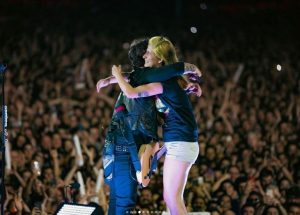 Em um momento do show Bárbara e seus amigos que estavam carregando a mensagem e Billie pediu, que logo em seguida se enrolou na bandeira.