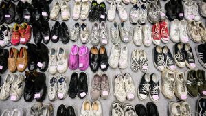 A mulher de meia-idade, que havia chegado com o marido, desabou no chão depois de descobrir um par de botas de cano alto desaparecidos. Estavam entre saltos de botas pretas e tênis. Em muitos casos, havia apenas um sapato.