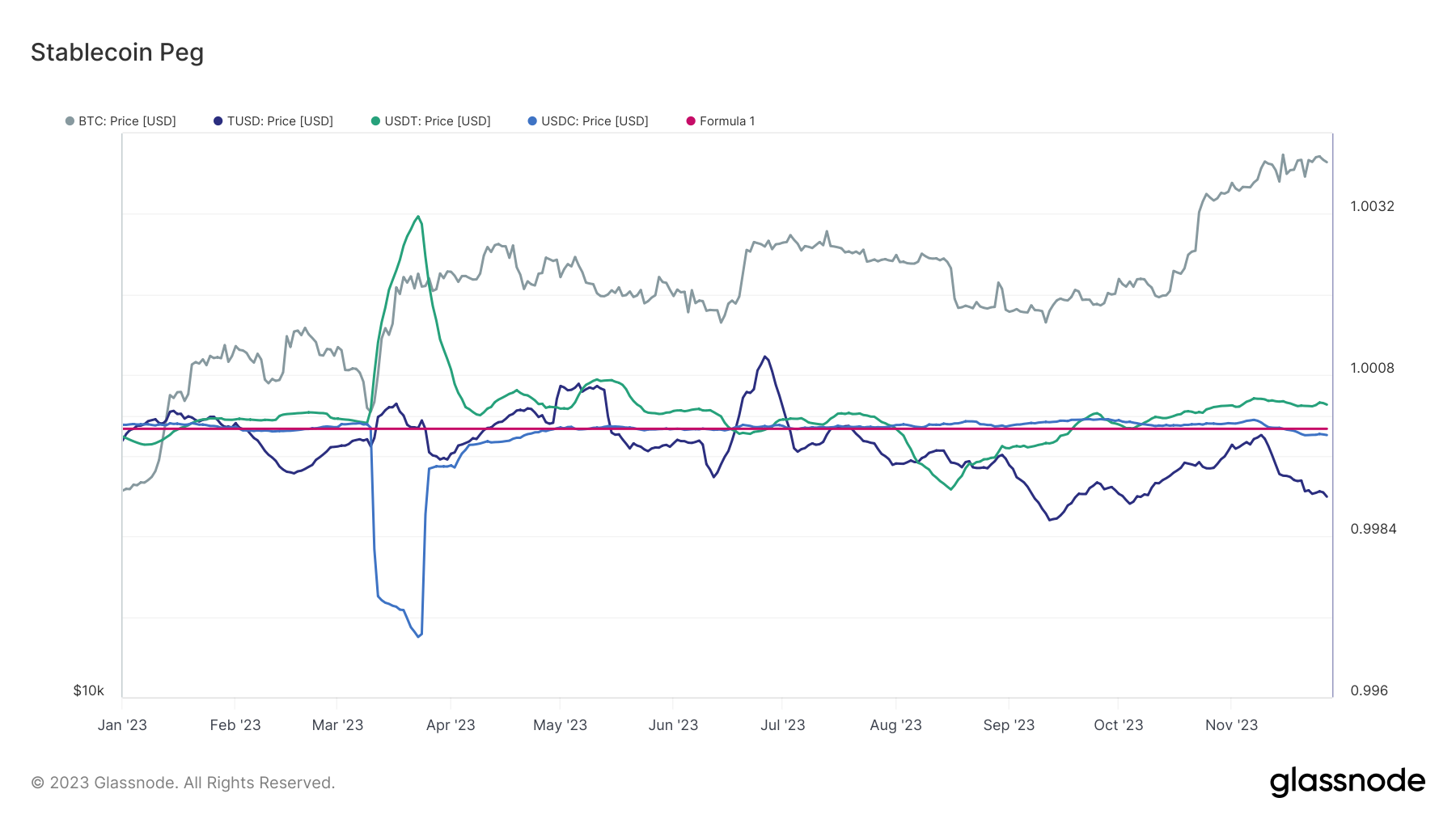 A TUSD, porém, apresenta o desconto mais acentuado, atingindo um dos menores do ano, apesar de ser negociada dentro de um centavo de dólar.