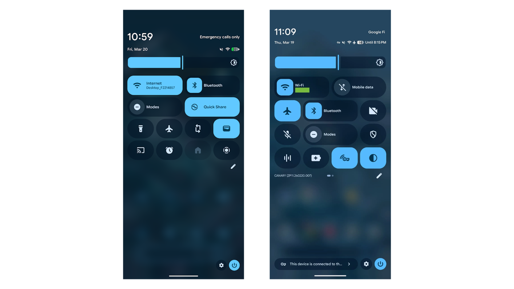 O Google testa um novo visual no painel rápido do Android 17. A versão Canary mais recente do sistema traz ícones separados para gerenciar o Wi-Fi e o uso de dados móveis individualmente, de acordo com o site 9to5Google.